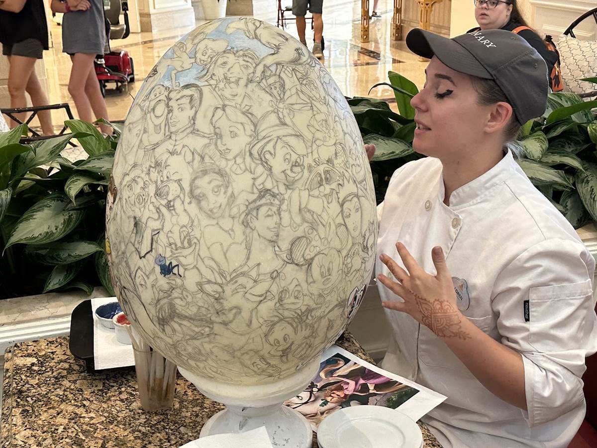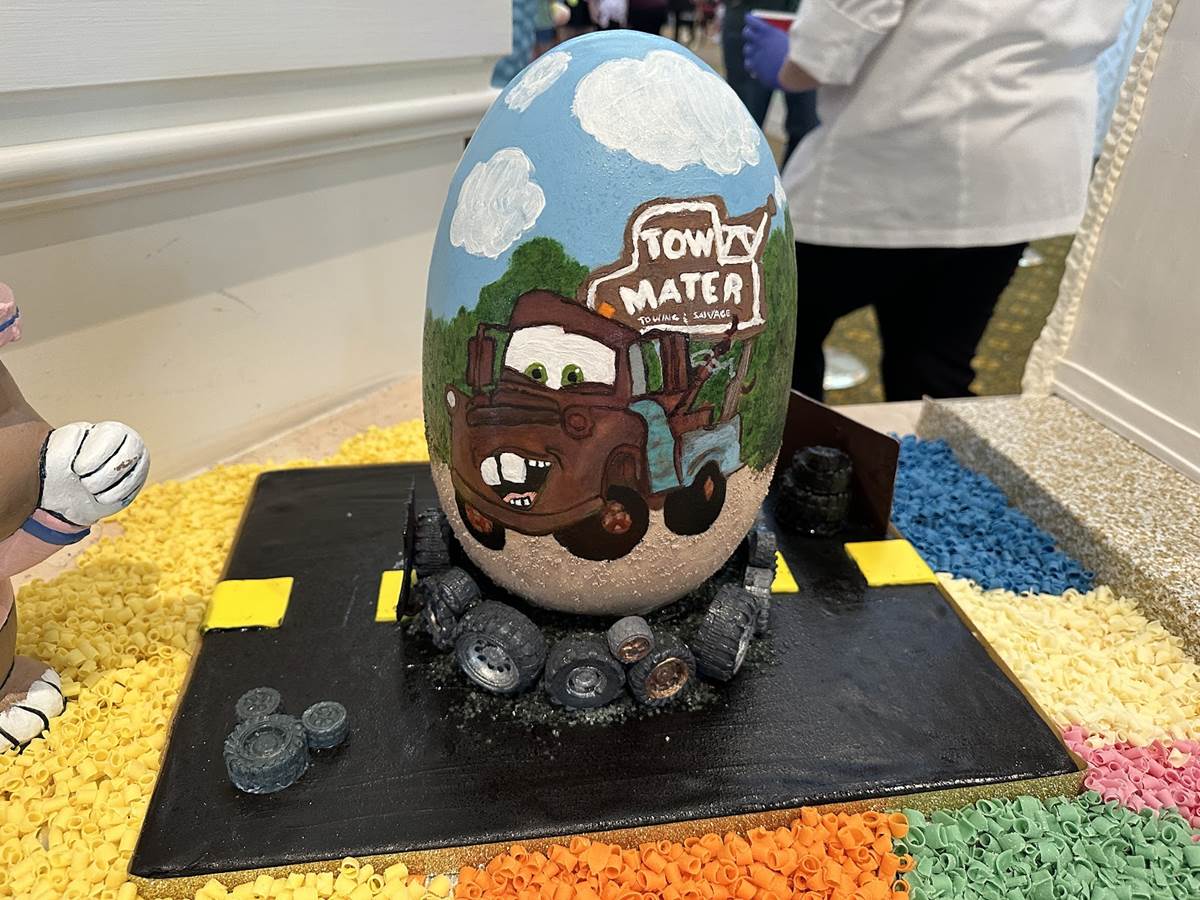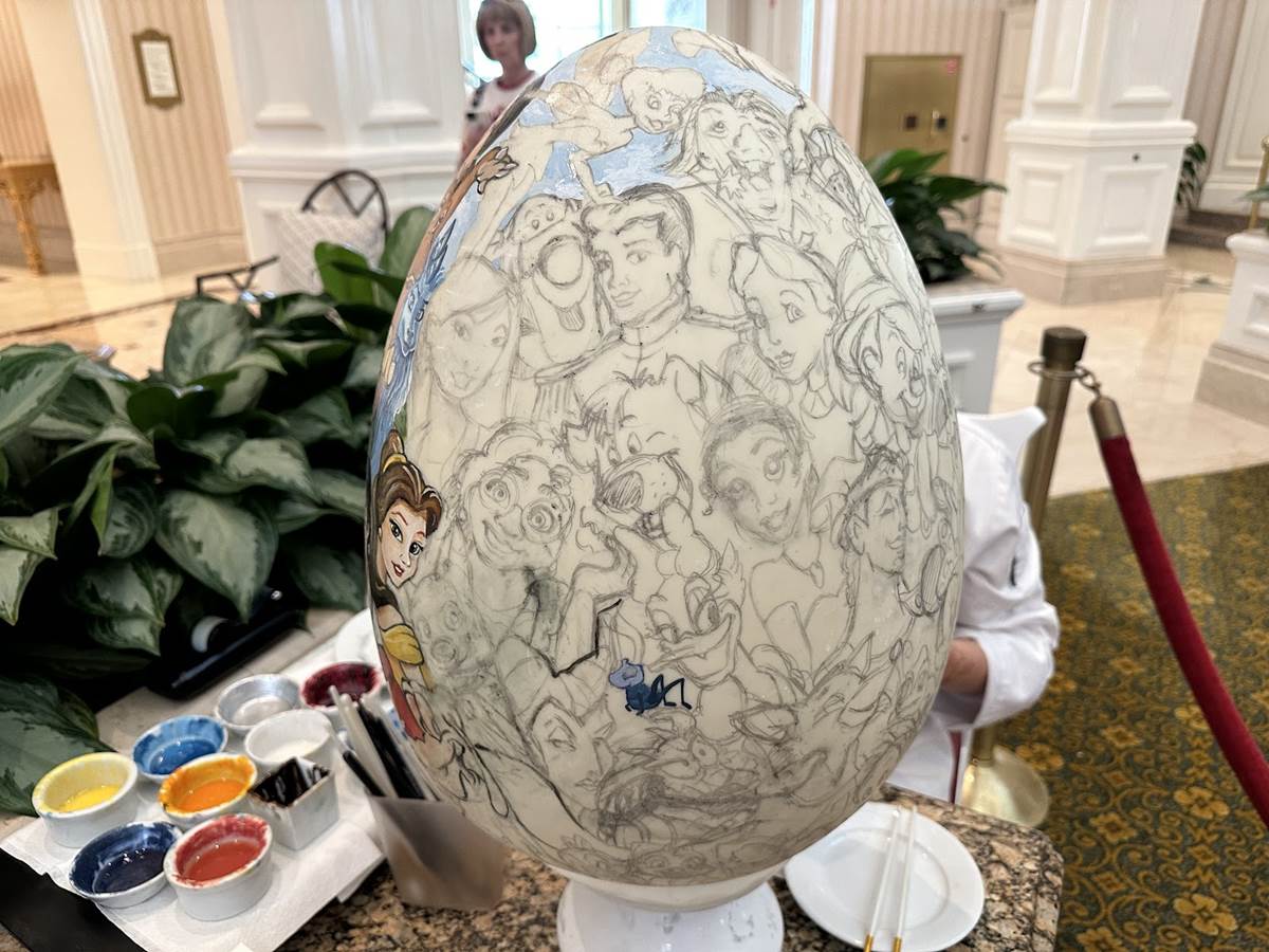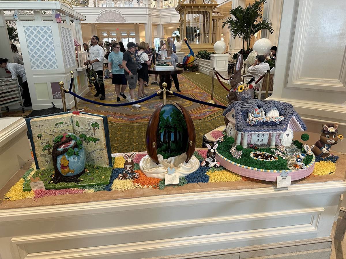 There are many beautiful eggs this year, designed by the talented culinary artists and pastry chefs of Disney’s Grand Floridian Resort & Spa. Some are themed to Winnie the Pooh, The Main Street Electrical Parade, and even Pixar Animation Studios’ Up, with a an egg sculpture standing over six feet tall.