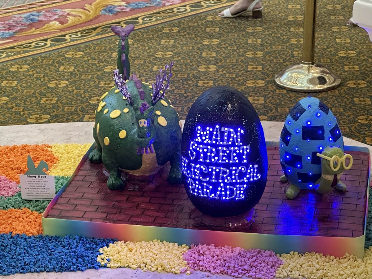The lobby plays host to the eggs, and guests passing through the resort (even if they aren’t staying there) are welcome to come look at the wonderful creations.