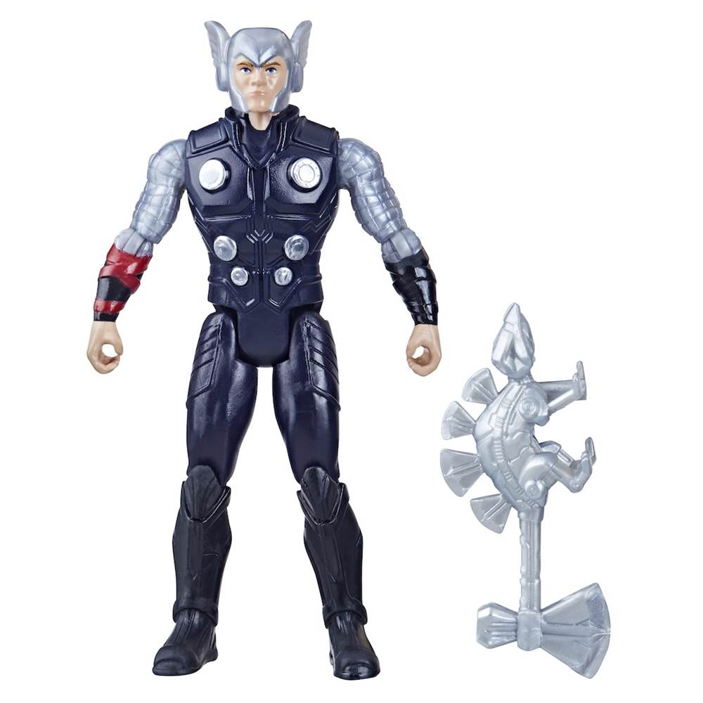 - Thor action figure features poseable limbs and a detachable weapon accessory