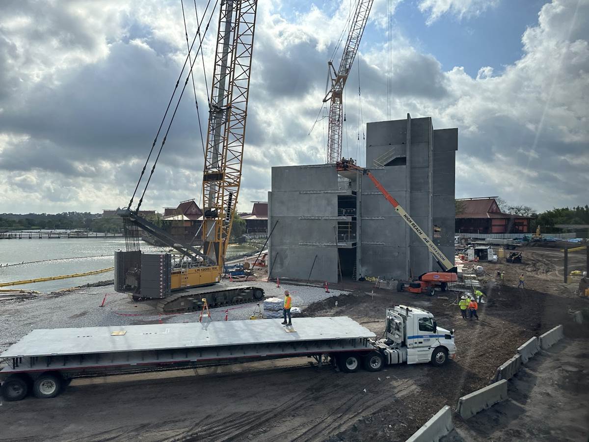 Announced in March of 2022, the new expansion to Disney’s Polynesian Village Resort comes in the form of a new tower as part of the Disney Vacation Club. The project was revealed while simultaneously announcing that the Spirit of Aloha show would not be returning to the resort as that land would be needed for the new development. The new tower is going vertical quickly, and will soon dominate the southeastern skyline of the Magic Kingdom Resort area.