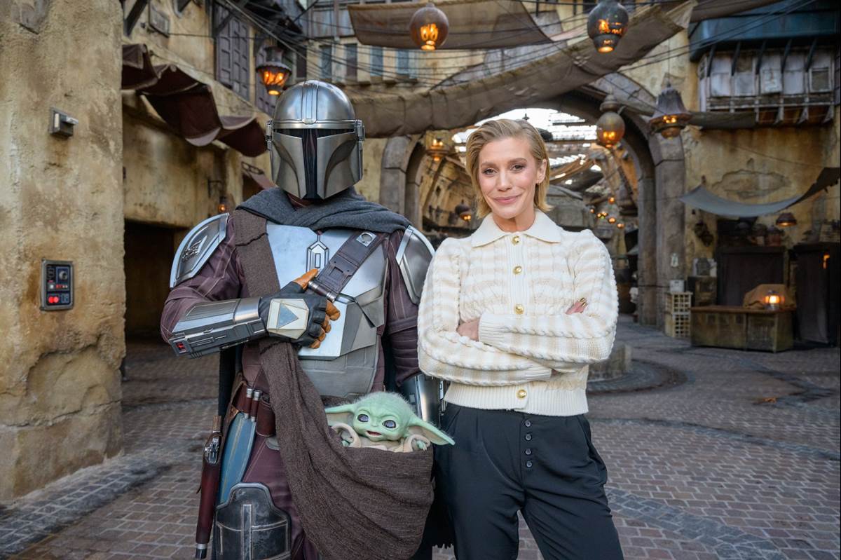 - In celebration of the release of Season 3 of The Mandalorian, Katee Sackhoff visited Din Djarin and Grogu as they roamed around the streets of Batuu.