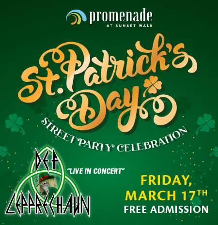 - To celebrate St. Patrick's Day on March 17, there will be a special event happening at Sunset Walk for the entire family.