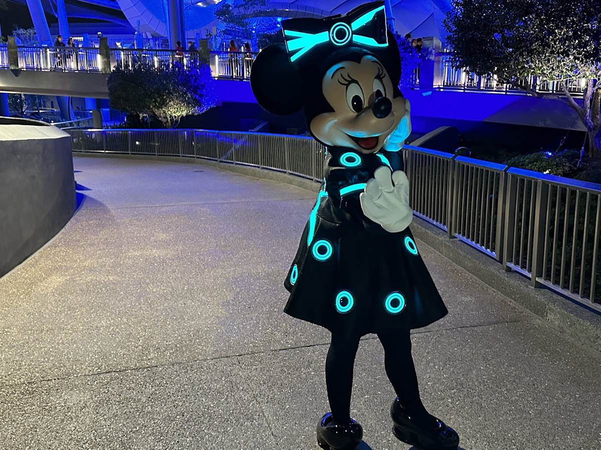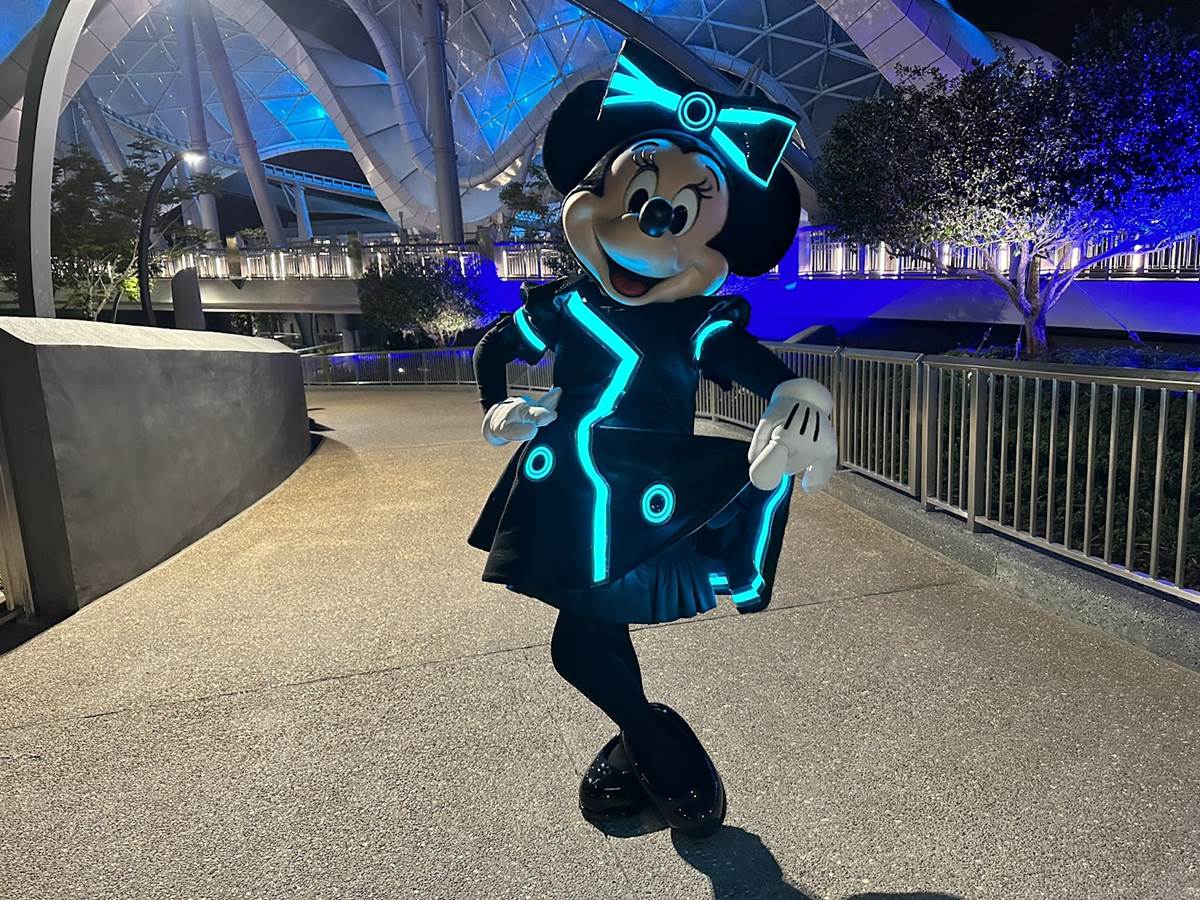 - Mickey, Minnie, Donald and Goofy all entered the grid yesterday and put on these awesome glowing outfits in honor of TRON Lightcycle / Run.