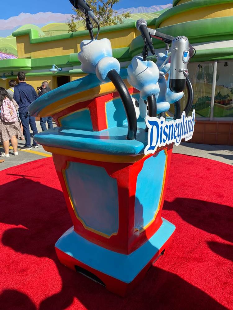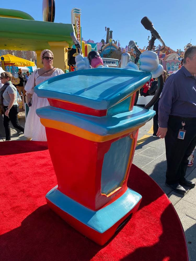 We were informed by an Imagineer that the podium from the original opening ceremony for Mickey’s Toontown was used for this event.