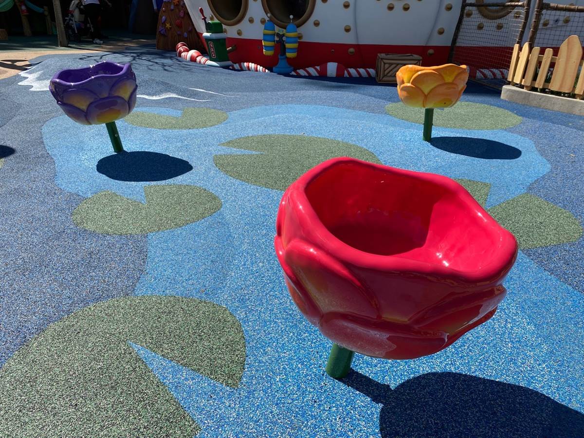 Donald’s Duck Pond will help little ones get the wiggles out and make a splash. Perched in the duck pond, Donald’s Boat is surrounded by larger-than-life spinning water lilies, balance beams and rocking toys. Explorers can look into the boat’s portholes to witness bubbles of fun inside featuring familiar ducklings Huey, Dewey, Louie and Webby.