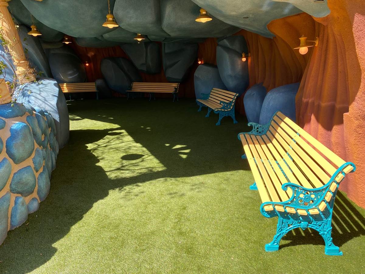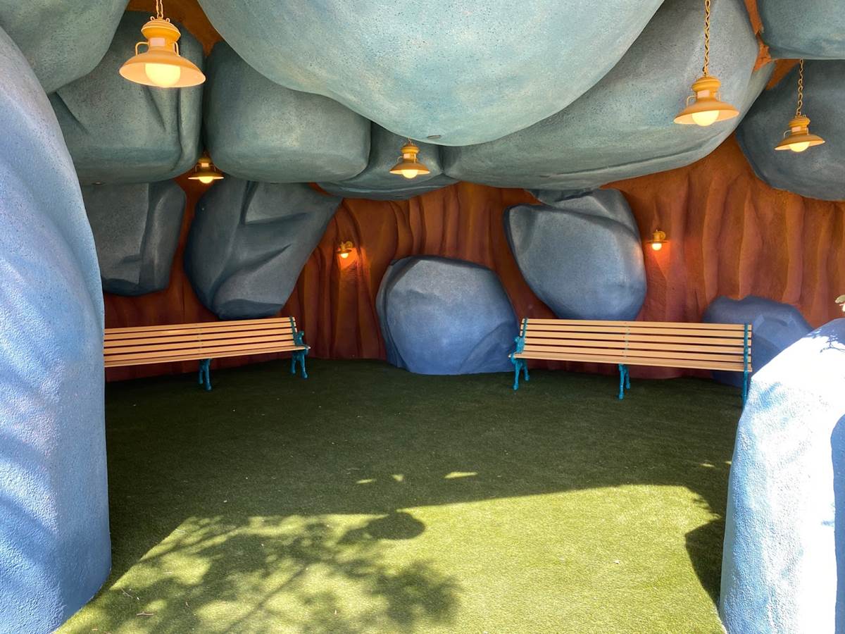 The neighboring Chip ‘n’ Dale’s Treehouse has been completely removed, replaced by a green space with some benches.