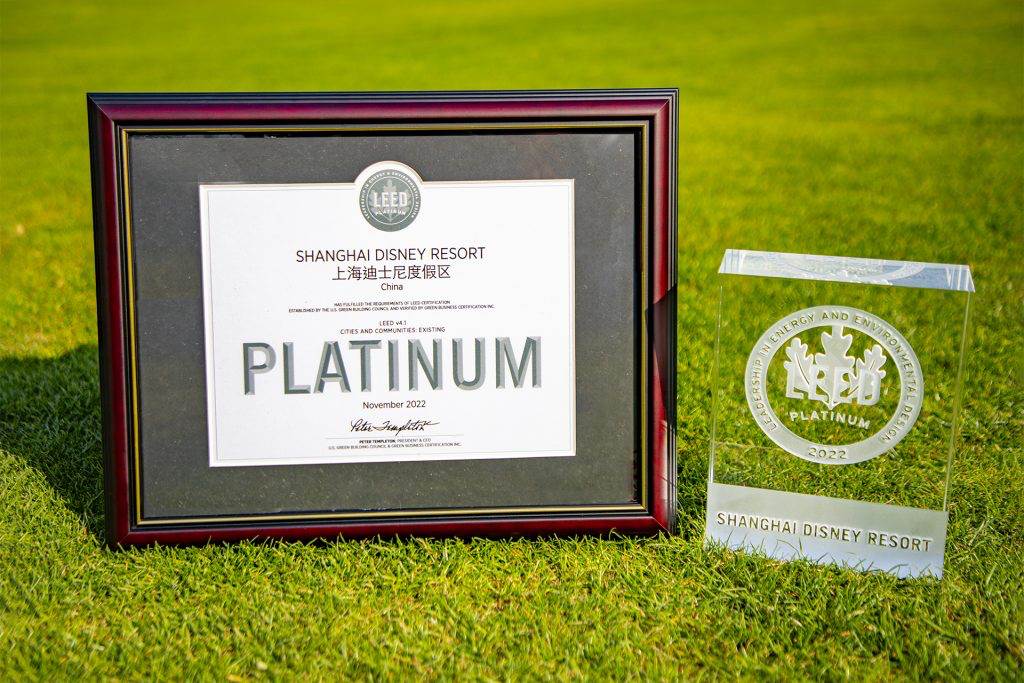 - Earlier this year, Shanghai Disney Resort was awarded the LEED Platinum certification under LEED v4.1 for Communities: Existing rating system, recognizing it to be the world’s first resort to achieve this highest level of LEED certification. This noteworthy achievement is another clear reflection of Shanghai Disney Resort's long-term commitment to sustainability and environmental conservation.