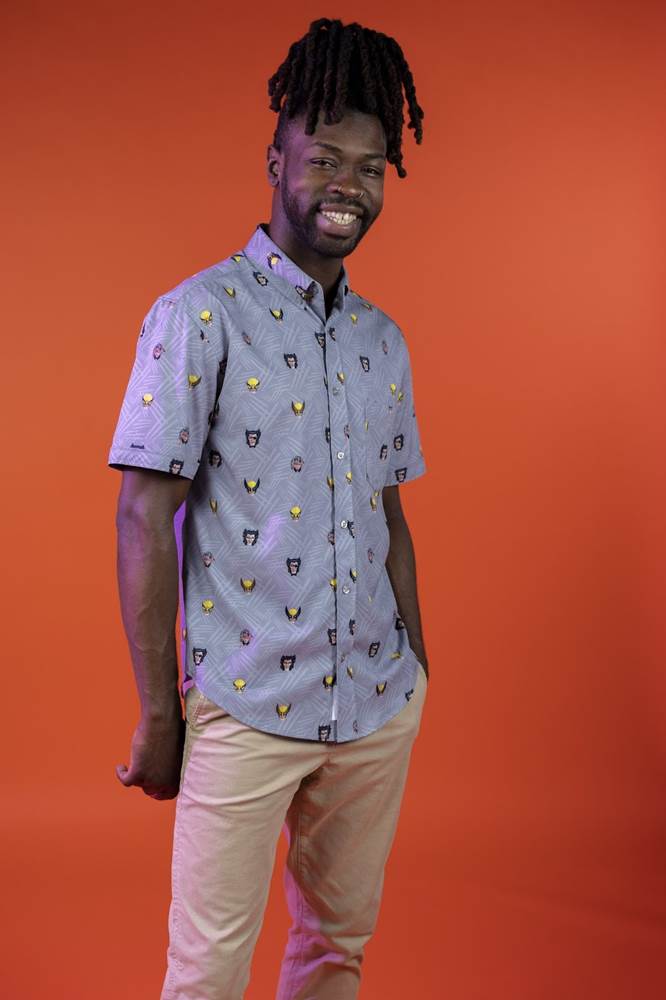 “This KUNUFLEX button down features the many facial expressions of Wolverine through the ages, from “menacing grimace" to “intimidating sneer" to ‘fierce scowl.’ Something tells us getting little Logan to smile for his class picture was quite the ordeal."