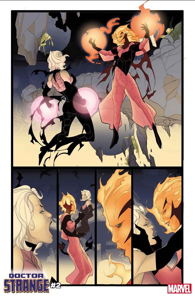 - In the first preview page for “Doctor Strange #2," Moon Knight introduces the good Doctor to his latest patient: a young girl who is stuck in a mysterious sleep. On another page, Stephen and Clea take on a pair of fearful foes in a frightful dimension. What perilous depths will they have to sink to in order to crack the case?
