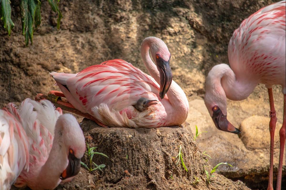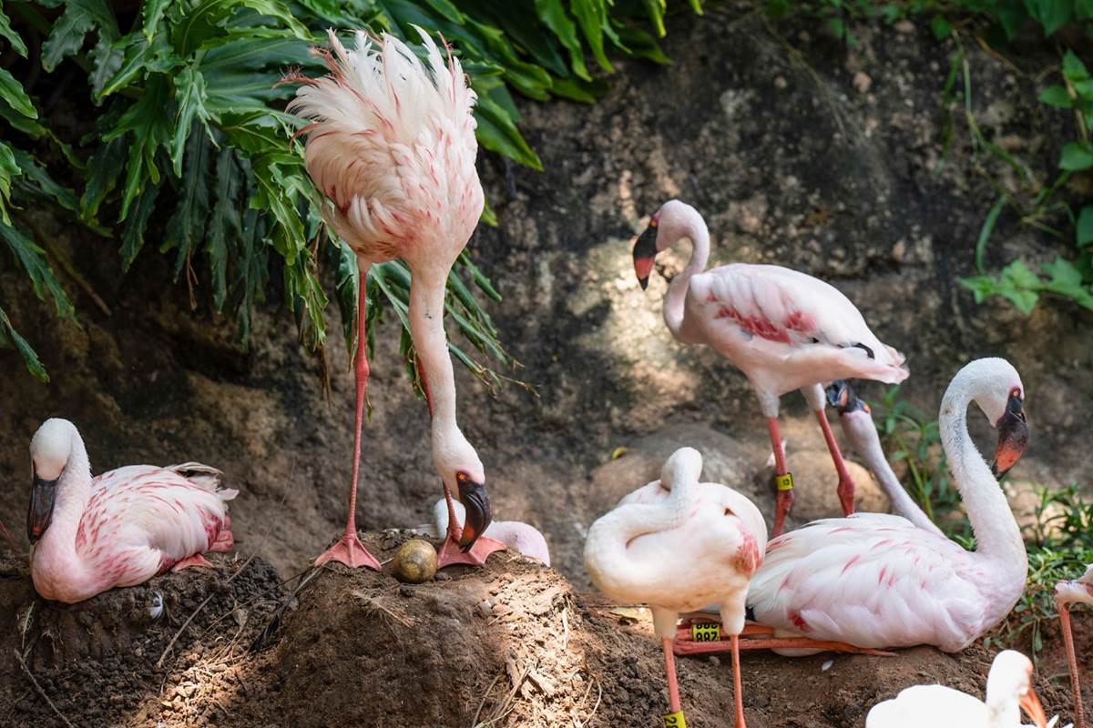 The lesser flamingos at Disney’s Animal Kingdom have been building nests seasonally near the Tree of Life on Discovery Island since 2003. However, their breeding results have not been nearly as successful as those of their greater flamingo cousins on Kilimanjaro Safaris. In the 20 years before the 2022 breeding season, lesser flamingos, which are one of the most threatened species of flamingos due to habitat loss and habitat destruction, had only hatched one chick at Disney’s Animal Kingdom.