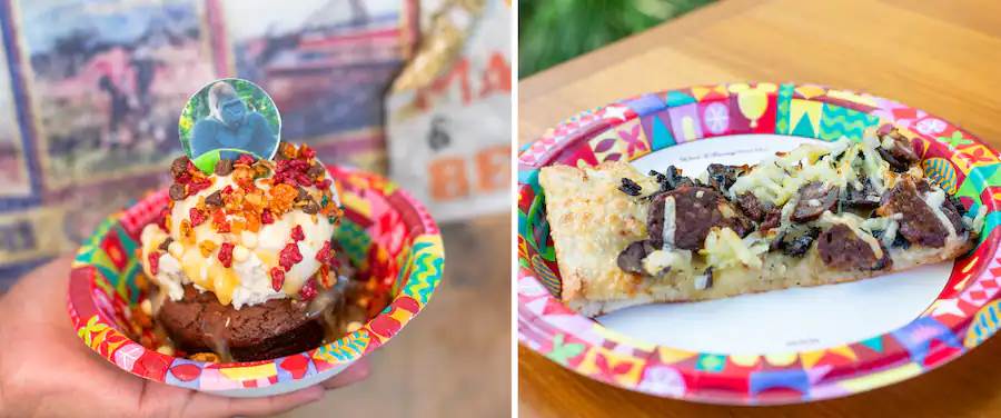 - Gorilla Falls Exploration Trail Sundae: Brownie with a scoop of vanilla ice cream, caramel sauce, and trail crunch mix topped with a white chocolate image of Kejana (New)