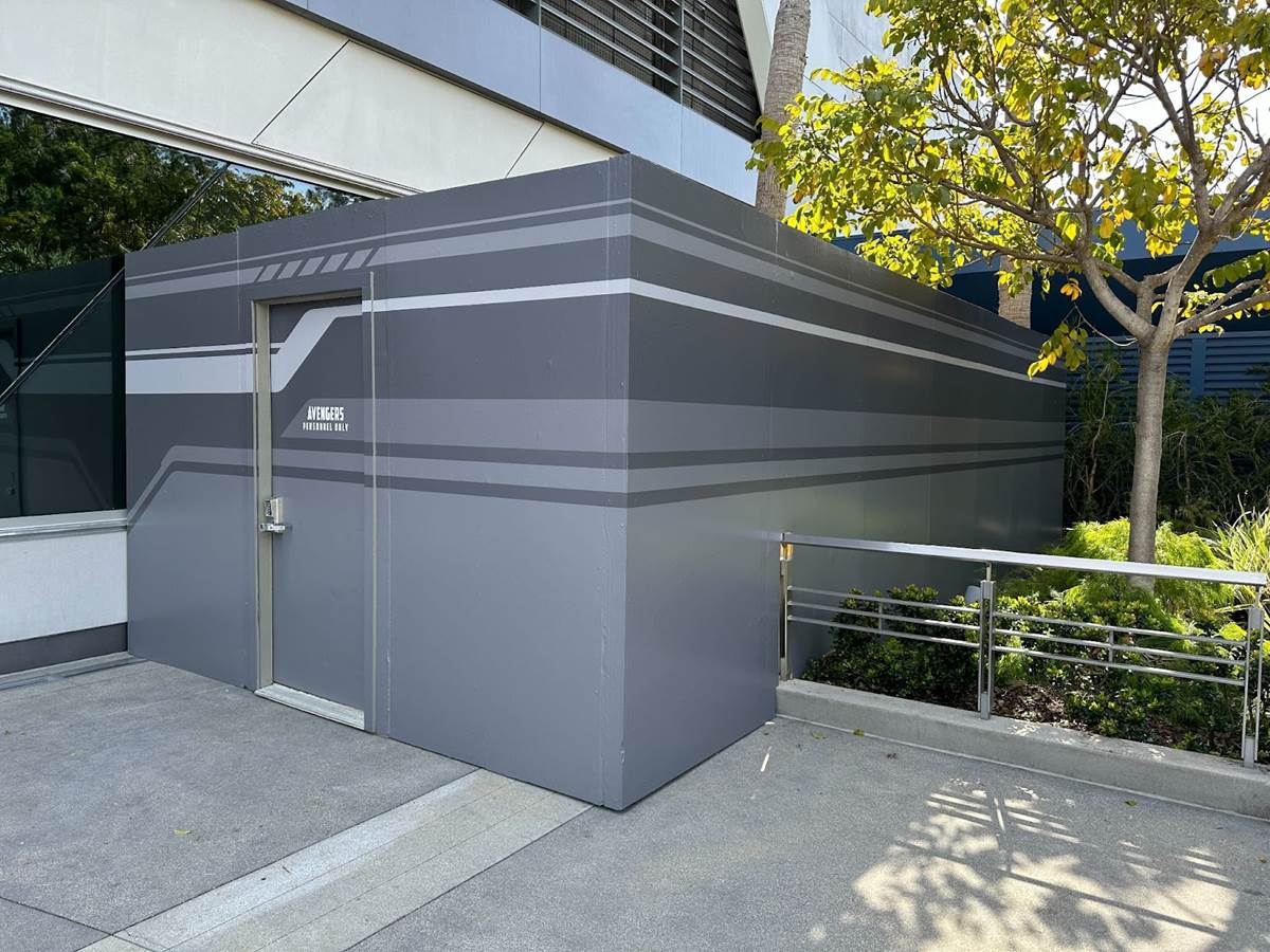 Guests visiting Avengers Campus at Disney California Adventure may notice that construction walls have popped up around Avengers HQ as work begins for a new merchandise location.
