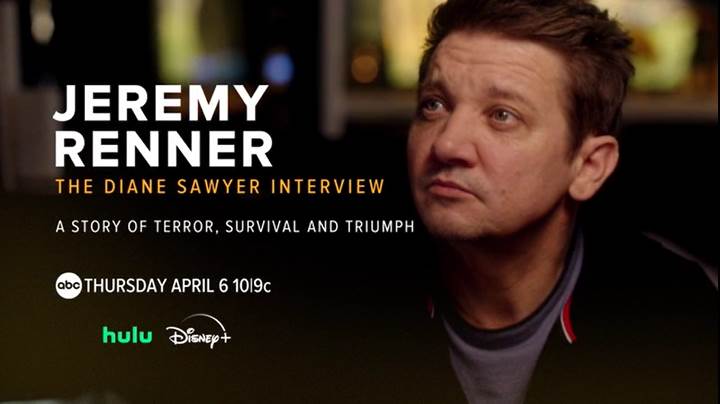 - Jeremy Renner: The Diane Sawyer Interview – A Story of Terror, Survival and Triumph airs on Thursday, April 6 (10:01-11:00 p.m. EDT) on ABC, streaming the next day on Hulu.