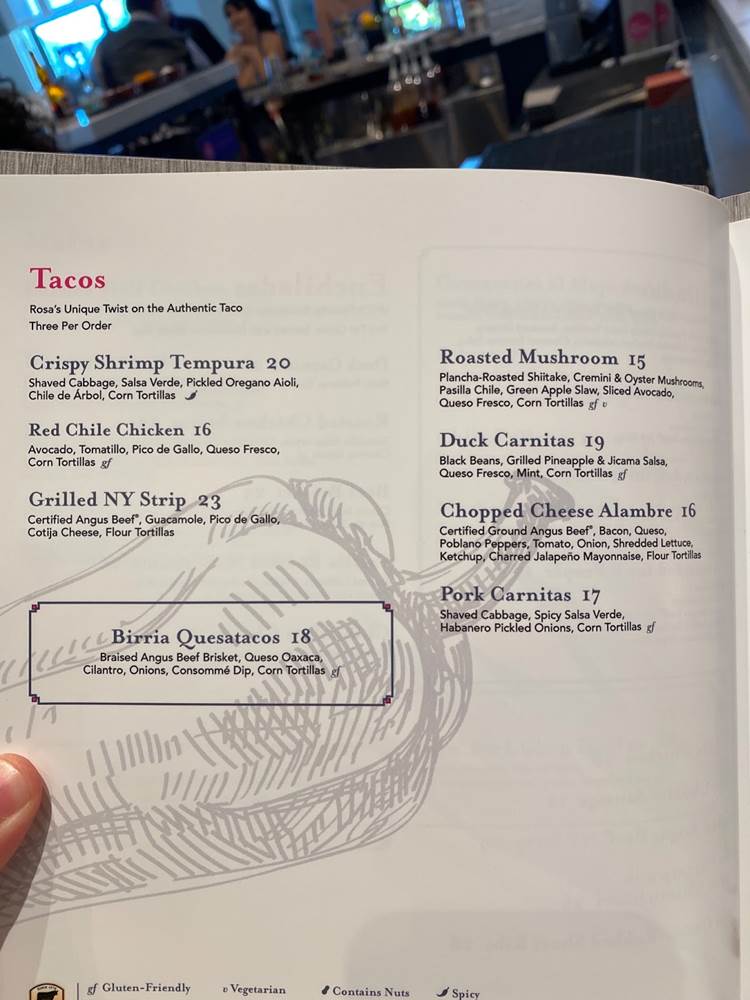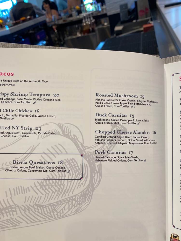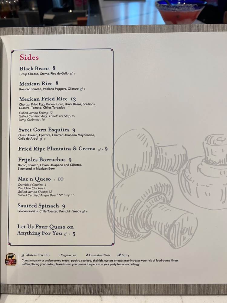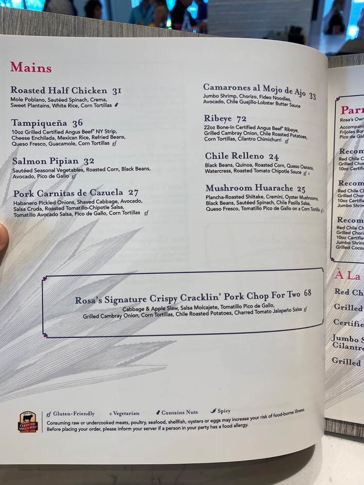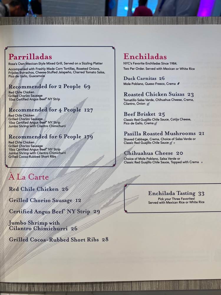 With Walt Disney World being a family destination, of course there is a multi-person platter available. Guests can enjoy Parrilladas in different sizes. Rosa’s Own Mexican-Style Mixed Grill, Served on a Sizzling Platter, accompanied with Freshly Made Corn Tortillas, Roasted Onions, Frijoles Borrachos, Cheese-Stuffed Jalapeño, Charred Tomato Salsa, Pico de Gallo, Guacamole, and come in various sizes for 2, 4, or 6, with the largest containing Red Chile Chicken, Grilled Chorizo Sausage, 10oz Certified Angus Beef NY Strip, Jumbo Shrimp with Cilantro Chimichurri, Grilled Cocoa Rubbed Short Ribs.