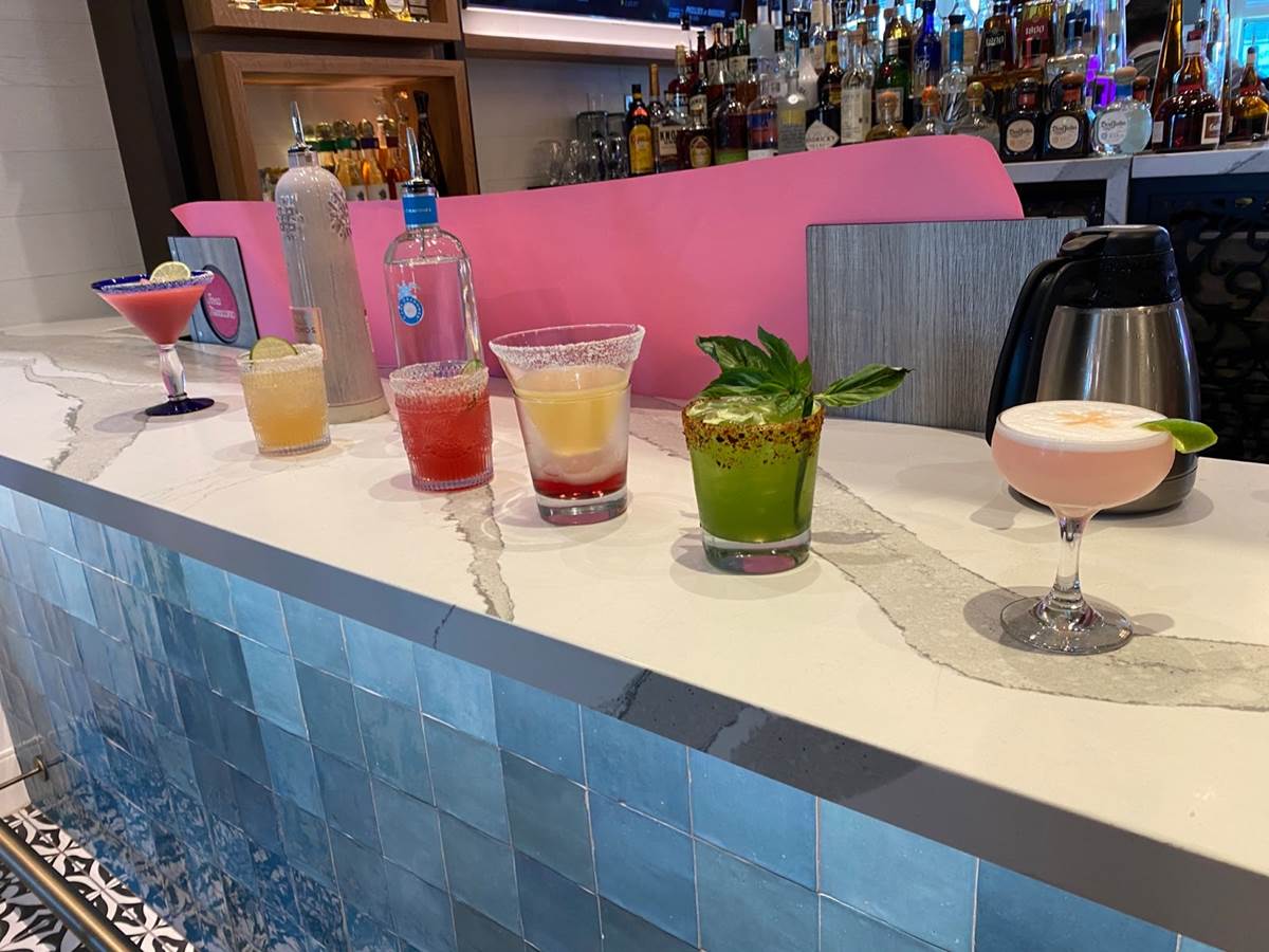 The new Walt Disney World Dolphin location also features its own exclusive drink, the Acapulco Club, which features Blood Orange infused Tito’s Vodka, Cointreau, Fresh Lime, Cliff Diver’s Bitters Blend, Aquafaba, and a special panache that pays tribute to the Acapulco Cliff Divers, which are also featured along the wall near the entry of the restaurant in a dimensional feature.