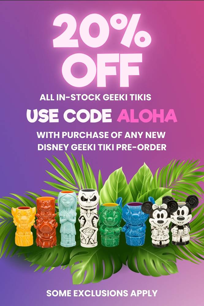 Pre-order a Disney Geeki Tikis and unlock 20% OFF in-stock Geeki Tikis through April 3rd, 2023 at 11:59 PM PST. Some exclusions may apply. - New Disney Geeki Tikis from Beeline Creative