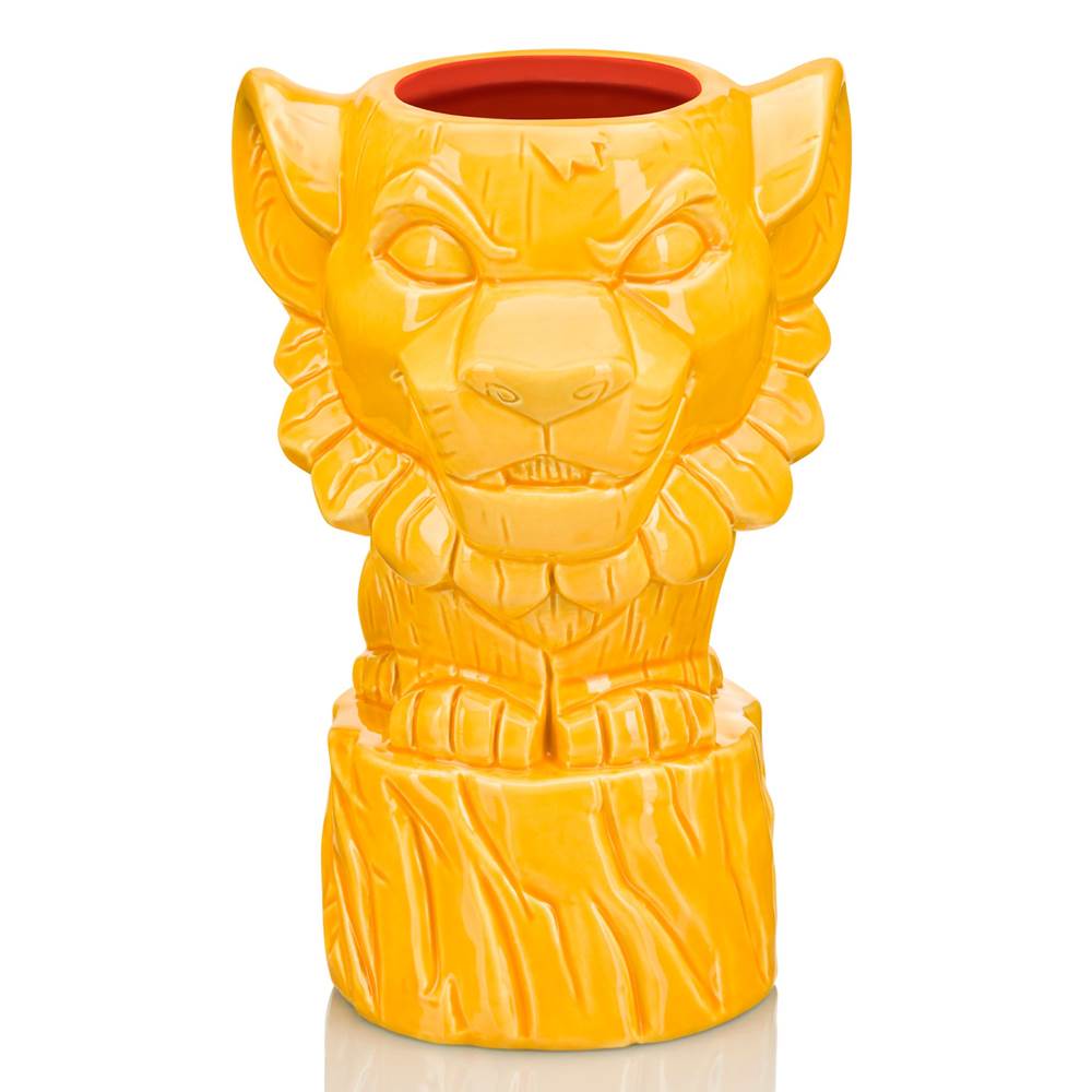 - The Simba Geeki Tikis mug stands 7in tall x 4.5in wide, features a vivid yellowish-orange glaze with a contrasting red interior, and holds 21oz. The Timon & Pumbaa Geeki Tikis® mug stands a towering 8.25in x 4.25 wide, features a boisterous brown glaze with a yellow interior, and holds a whopping 28oz. The reverse detailing includes the title catchphrase to their infectious song “Hakuna Matata."