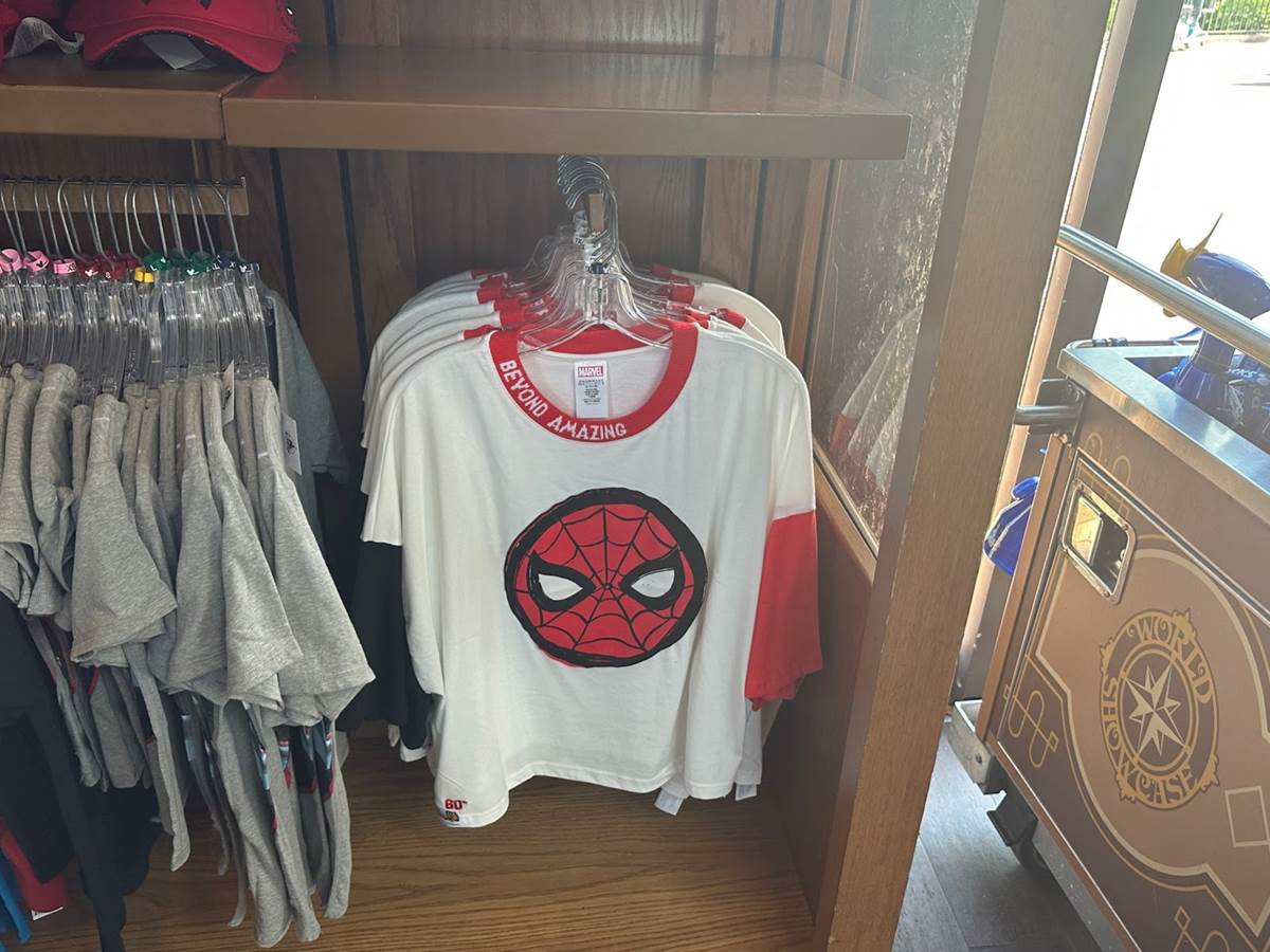 The Disney Traders shop at the entrance to World Showcase at EPCOT has been transformed into a Marvel store, selling all the latest products from the comic giant’s vast library of characters. Below, we’ll take a look at some of the merchandise currently found within.