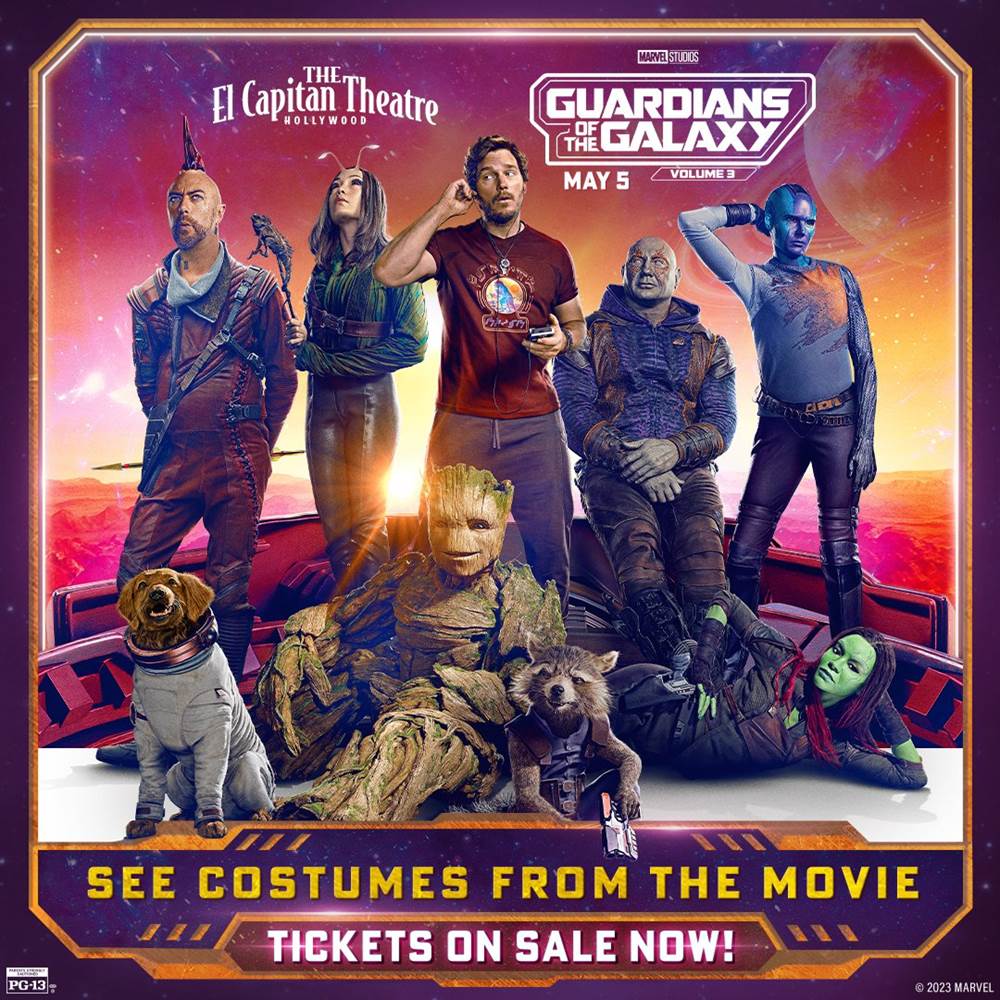 The El Capitan Theatre is offering a three-movie marathon and two fan event screenings for Marvel Studios’ Guardians of the Galaxy Vol. 3, hosted by Nerdist. Additionally, tickets for regular screenings of the film at the El Capitan Theatre are also now available.