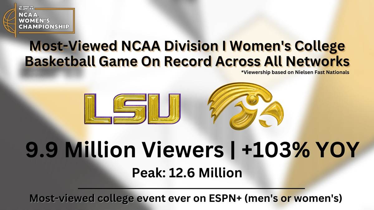 - That made it the most viewed NCAA Division 1 Women’s basketball game on record, across all networks.