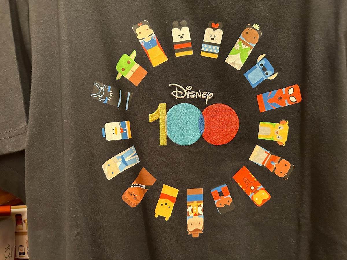 - You'll have a large circle of friends with you wherever you go wearing this tee featuring stylized renditions of favorites from the worlds of Disney, Pixar, Marvel and Star Wars. Black Panther, Grogu, Stitch and Mickey are among the 17 characters circling the embroidered Disney100 logo on the front of this soft cotton jersey knit t-shirt.
