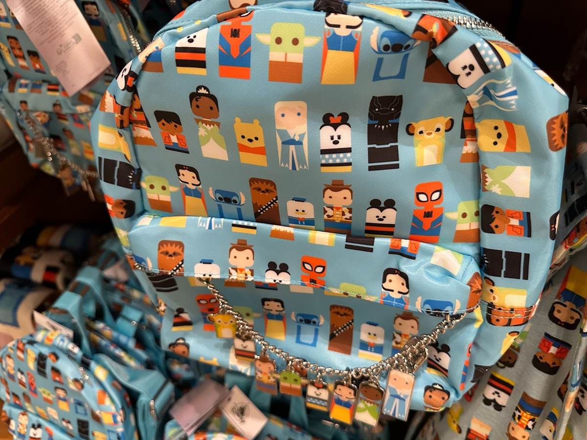 - You'll love traveling around in the company of some of your favorites from the worlds of Disney, Pixar, Marvel and Star Wars when carrying this backpack. Created as part of the Disney100 celebration, the bag's allover print features stylized renditions of such characters as Mickey, Stitch, Chewbacca, Snow White, Elsa and Spider-Man.