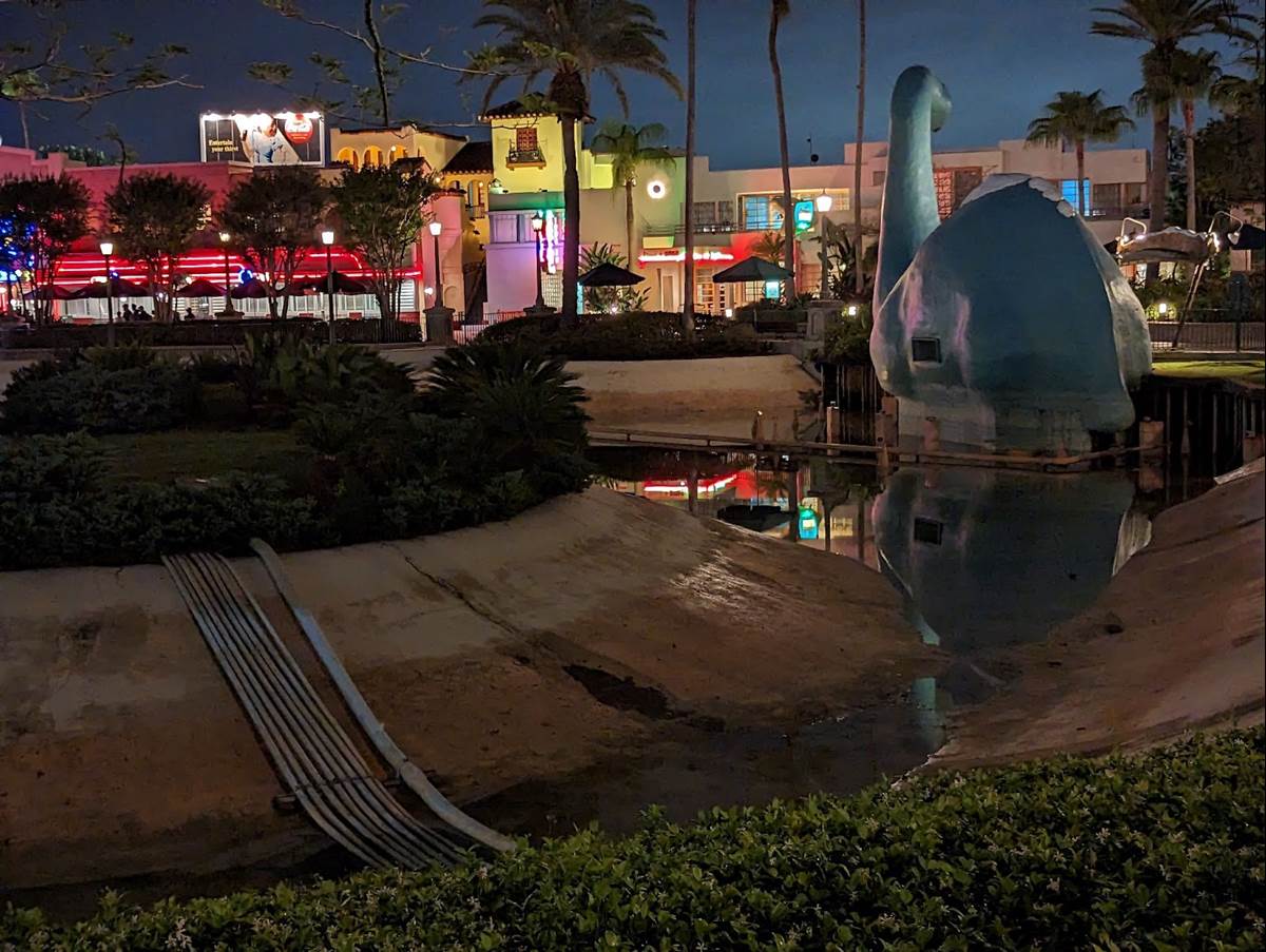 - While on a stroll through Disney’s Hollywood Studios last evening, we happened upon a draining Echo Lake, where the waters are receding near the Dockside Diner and Dinosaur Gertie.