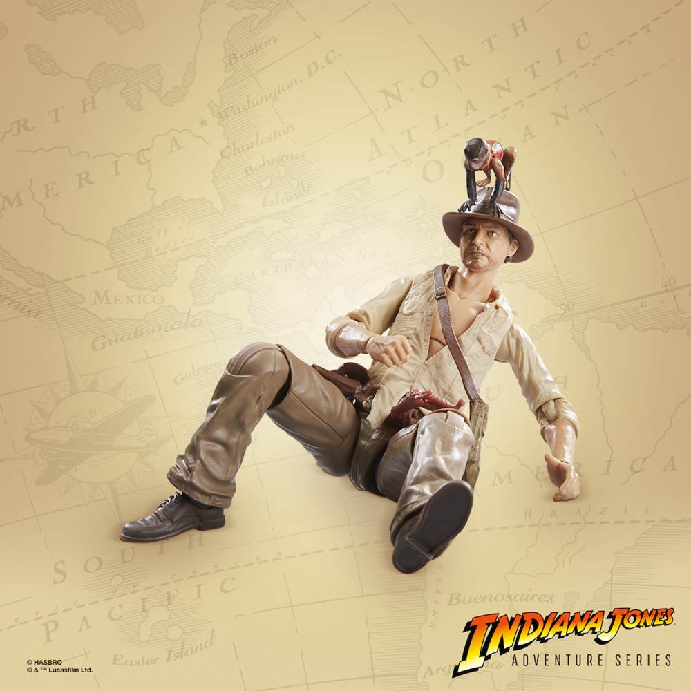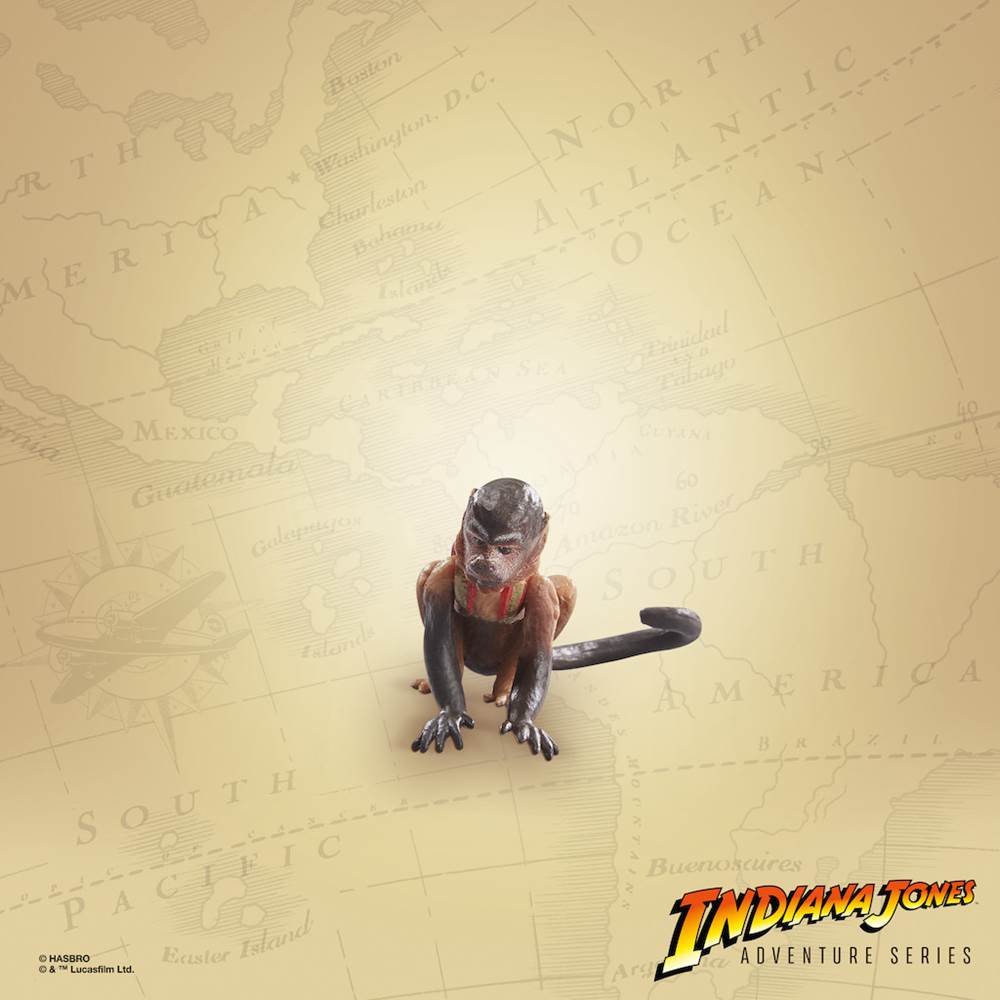 - Includes figure, detachable pistol, coiled whip, whip, satchel, monkey accessories, as well as 2 pairs of additional hands.