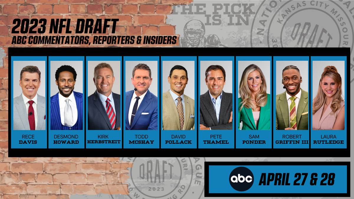 ESPN's tradition of presenting the NFL draft continues as The Walt Disney Company will present the 2023 NFL offseason’s signature event from Kansas City across ESPN, ABC, ESPN Radio, ESPN Deportes, and ESPN’s social media platforms over the course of the draft’s three days, April 27-29.