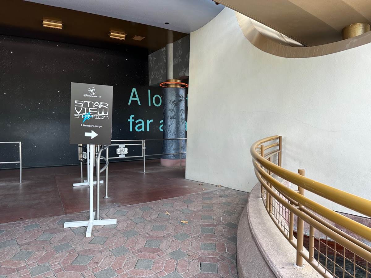 Entrance to Star View Station is via the lower level of the Star Wars Launch Bay building, where guests will then ascend to the upper level, where the lounge is located.