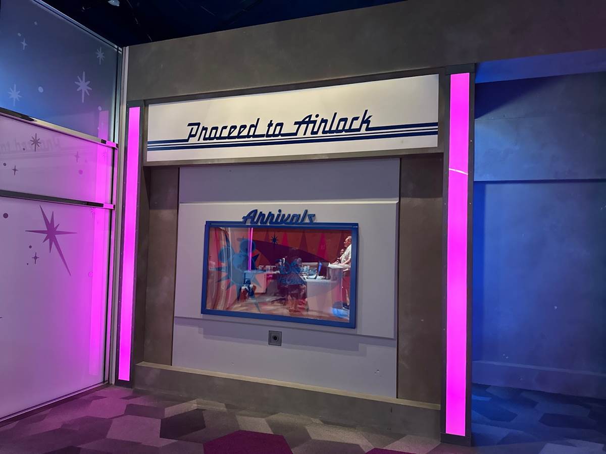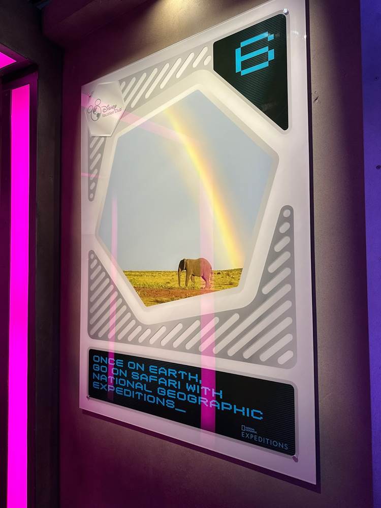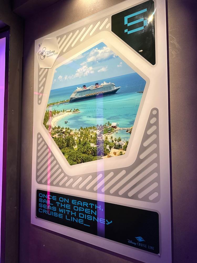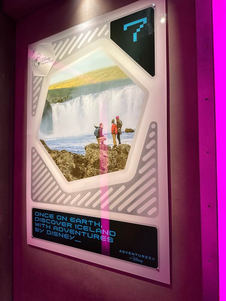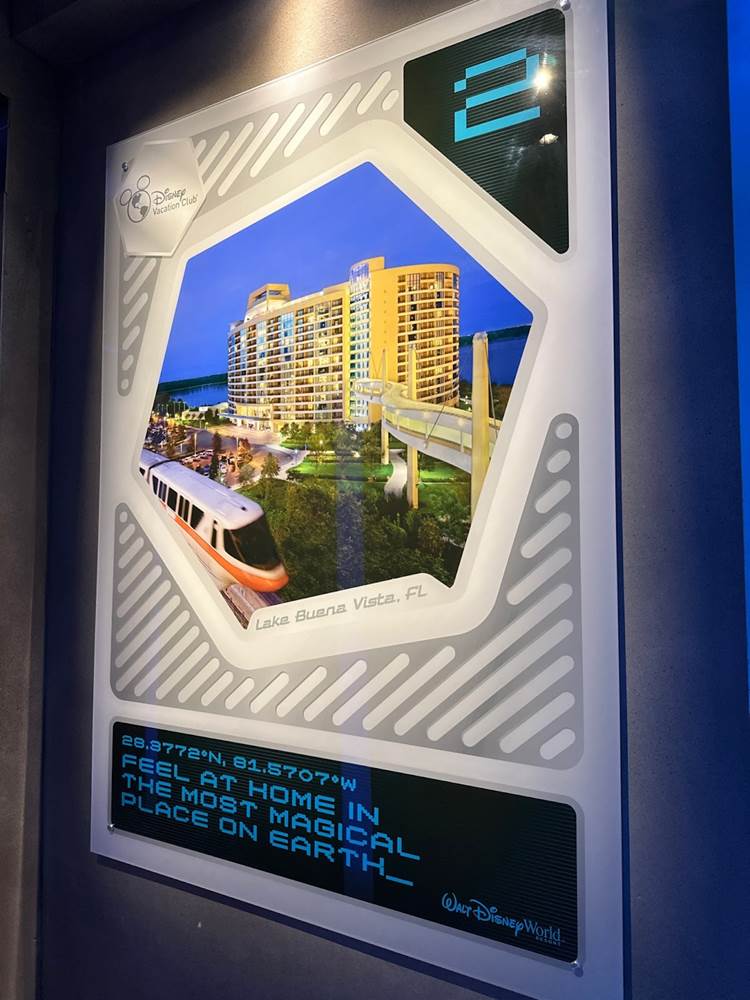 Guests then proceed through the Airlock through a hallway lined with themed advertisements for various DVC properties.