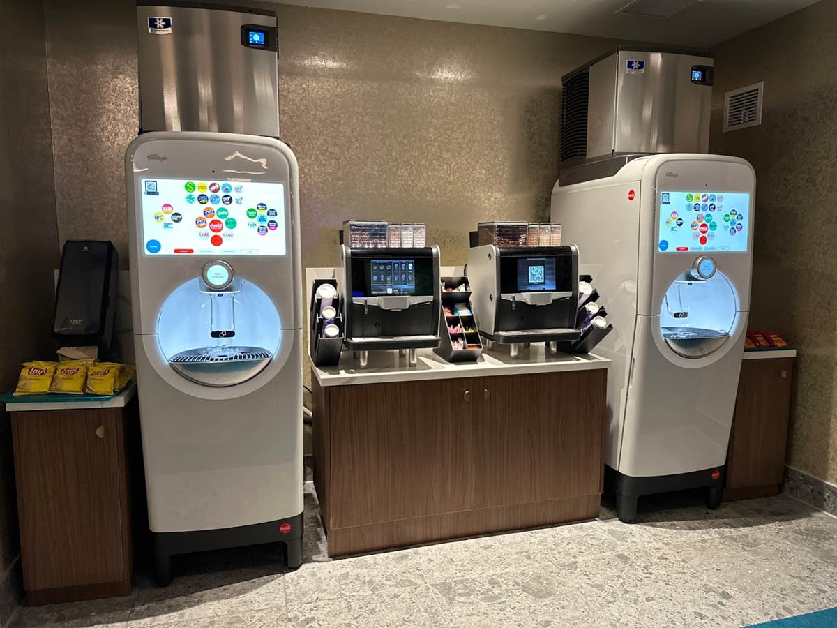 Guests can refuel with complimentary Coca-Cola Freestyle machines and a selection of coffee beverages.