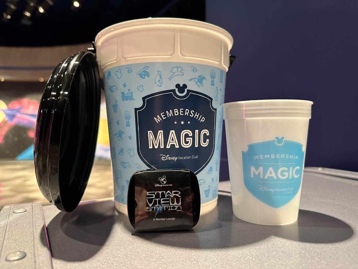 Guests who visited the lounge on opening day were given a popcorn bucket (with voucher to redeem for popcorn in the park), a cup, and a tin of breath mints. These items were made for today, but if they have leftovers they will keep giving them out until they’re gone.