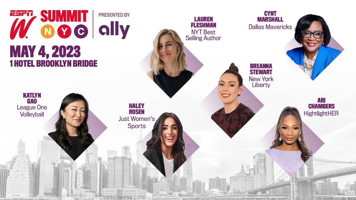 - ESPN has announced the agenda for the 2023 espnW Summit NYC presented by Ally, taking place Thursday, May 4 at the 1 Hotel Brooklyn Bridge. The one-day event will once again gather leaders across sports, business, and entertainment for a curated program of keynotes, panels, and presentations focused on the women and sports space. Programming from this year’s Summit will also be live streamed across select espnW and ESPN digital and social platforms – in-person and virtual registration are available at nyc.espnwsummit.com.