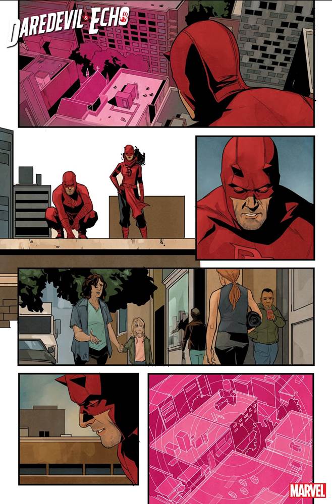 - On one page, Daredevil and Echo reunite after time apart. On another, this reunion is shattered by a sonic attack coming from an ominous young girl.
