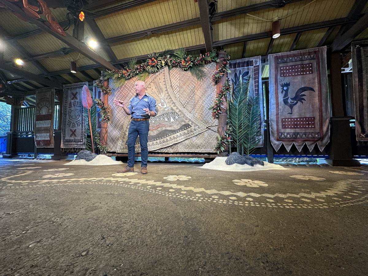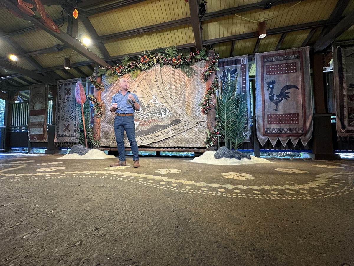 Guests will be able to meet the new chief of Motonui in a themed setting reminiscent of one of the huts that populate their island villages. The new meet and greet area takes over one of the former Discovery Island Riverboat Landings, specifically the one closest to Dinoland U.S.A.