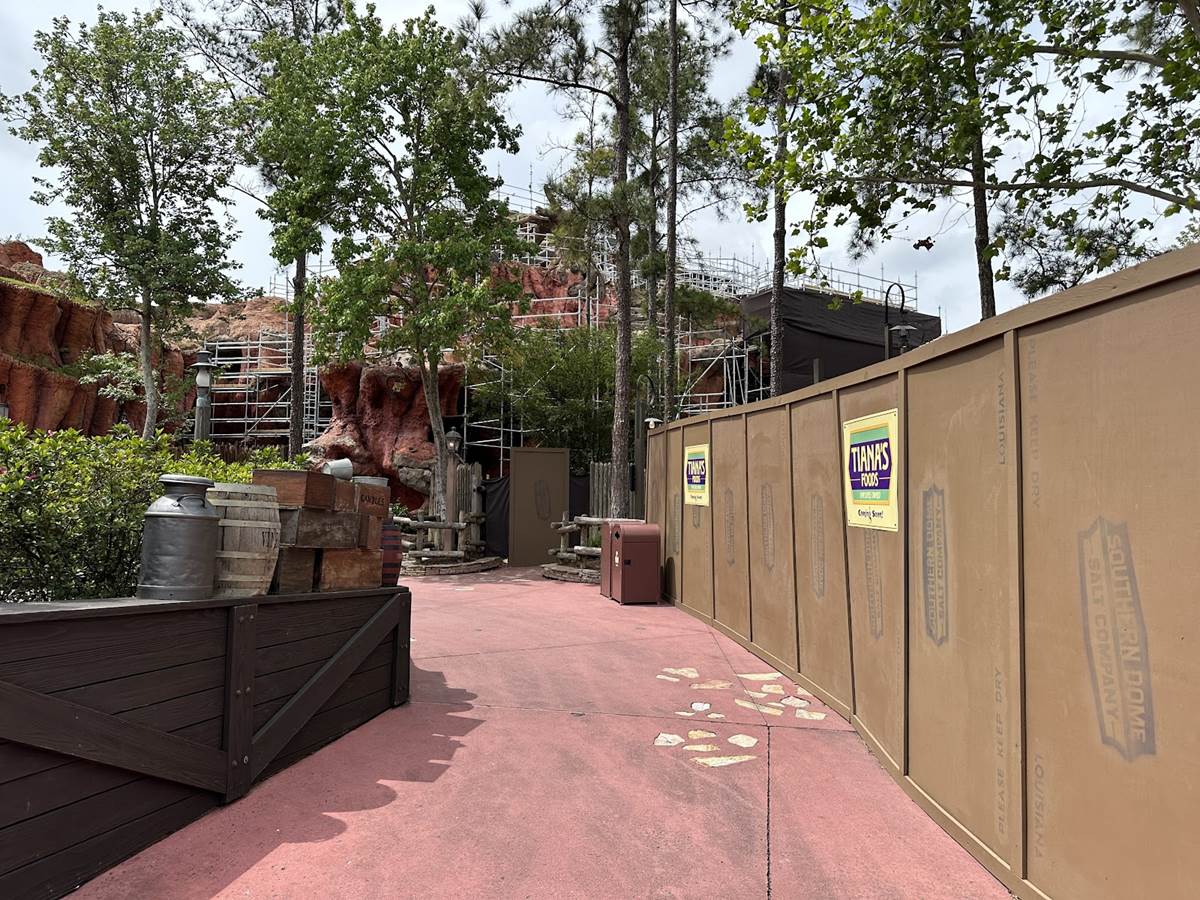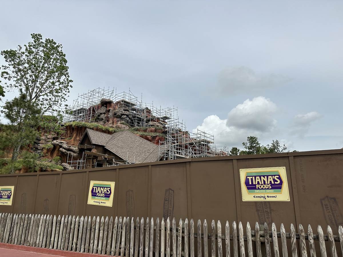 Fans have already gotten used to seeing the signage for Tiana’s Foods and the fictitious Salt Mining Co that will play a part in the rides storyline, but frequent park visitors are sure to notice the peak of the mountain itself, changing dramatically from the Splash Mountain we once knew.