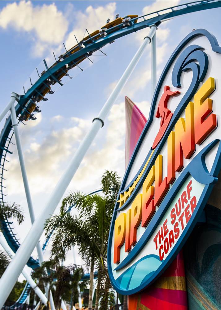 - This attraction will be the world’s first “Surf Coaster." Riders will feel the power of the ocean in a whole new way, making Pipeline every thrill-seeker’s newest obsession. Pipeline will take them on an unparalleled journey and will keep them coming back for more.