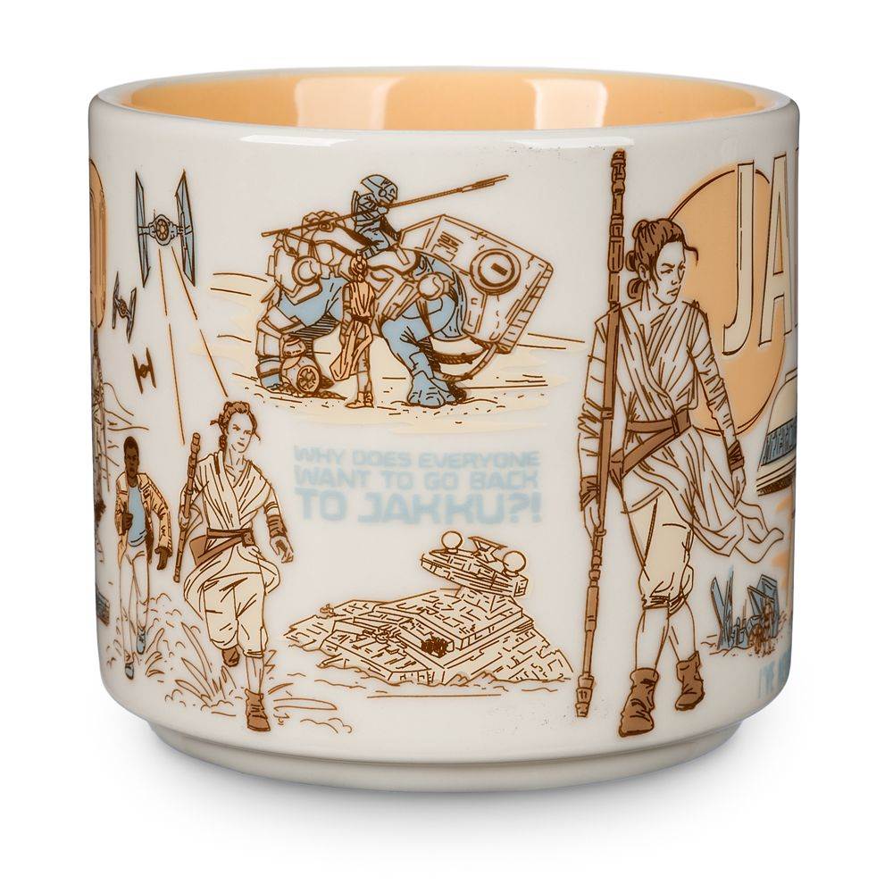 Audiences took their first journey to Jakku in The Force Awakens and it’s here that we meet Rey. Naturally, she’s featured on the mug along with BB-8 and the Niima Outpost.