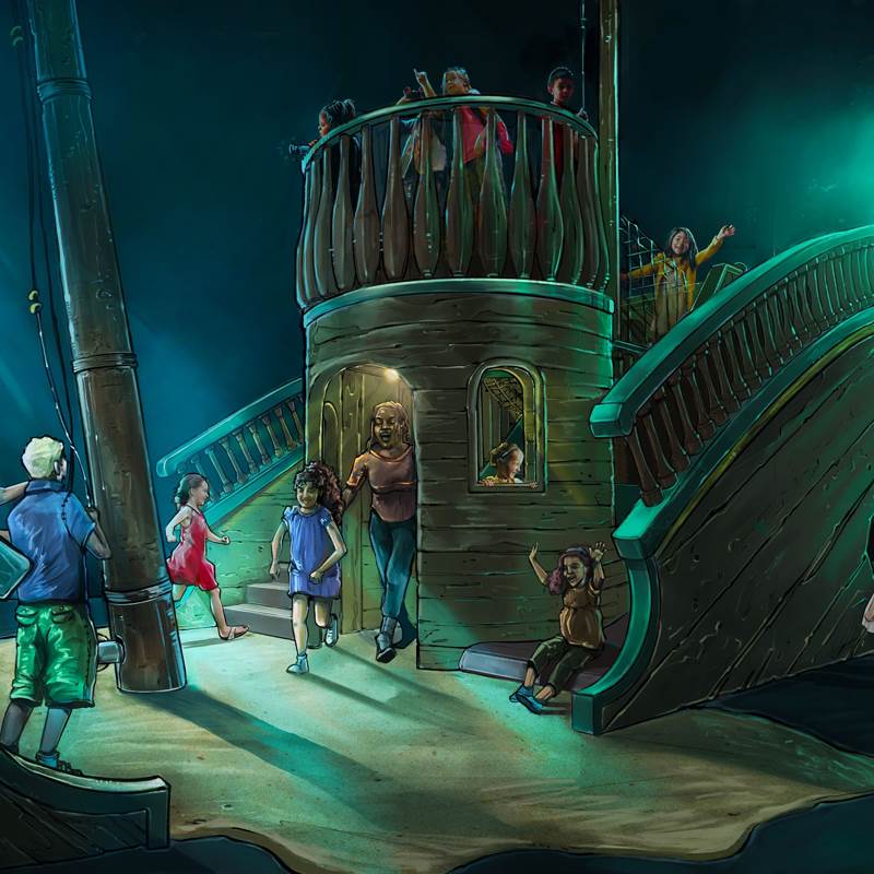 - Explore an abandoned shipwreck — climb cargo net tunnels up to a crow’s nest and unlock treasure chests below deck.
