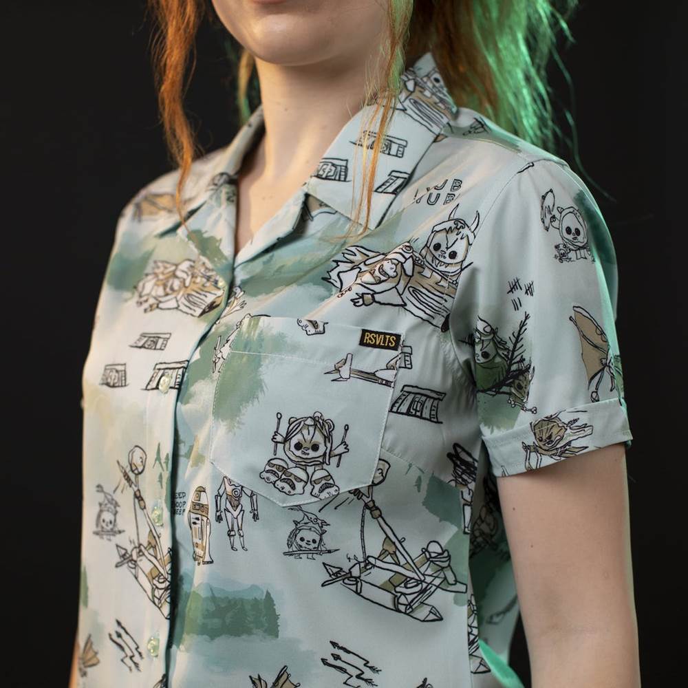 Since this Star Wars x RSVLTS collection celebrates a movie milestone, all apparel features a limited edition 40th Anniversary Return of the Jedi patch too. The assortment of designs span RSVLTS’ classic (unisex) and women’s style Kunuflex button-down shirts (each $70), with select items available in koozies ($6), preschool ($39) and hybrid shorts ($65).