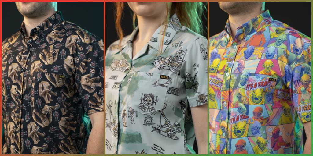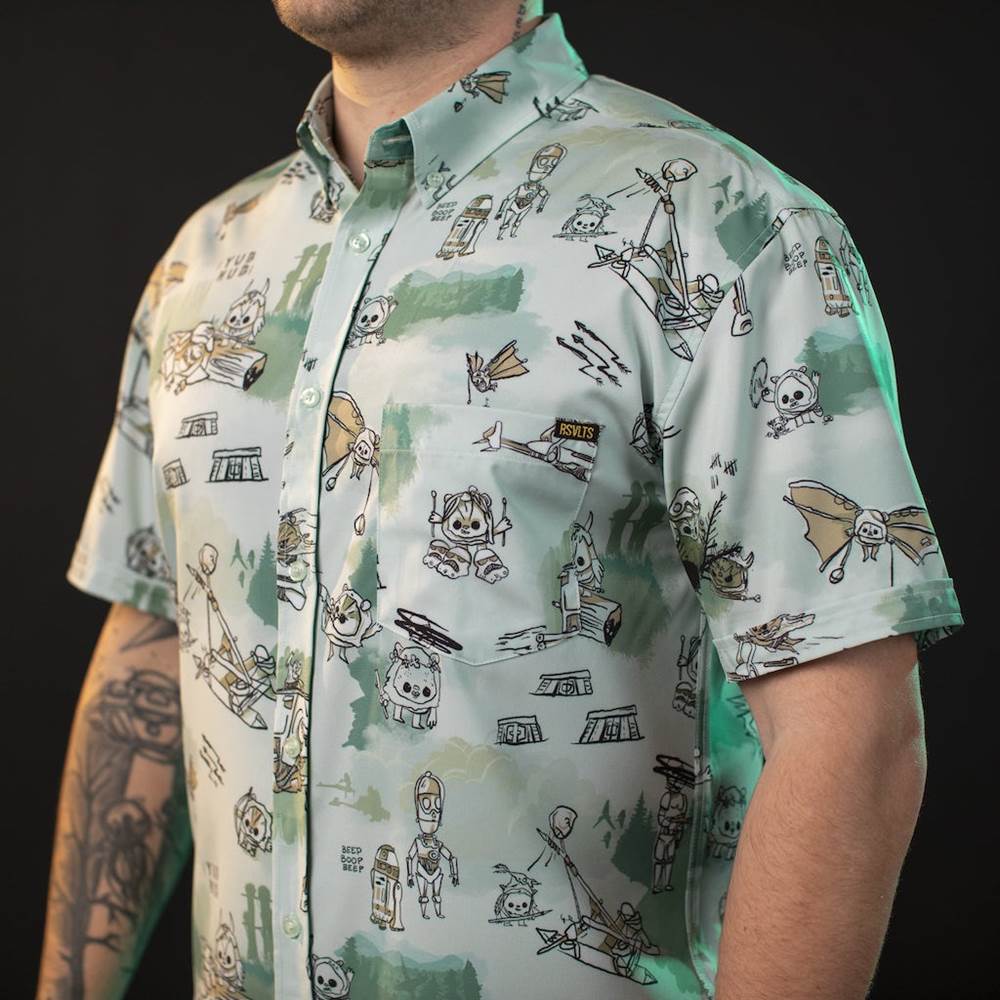 The Star Wars x RSVLTS collection launches May 4th at 4pm ET. All items are available in classic (unisex) and women’s style Kunuflex (each $70) button-down shirts, with select items available in koozies ($6), preschool ($39) and hybrid shorts ($65).