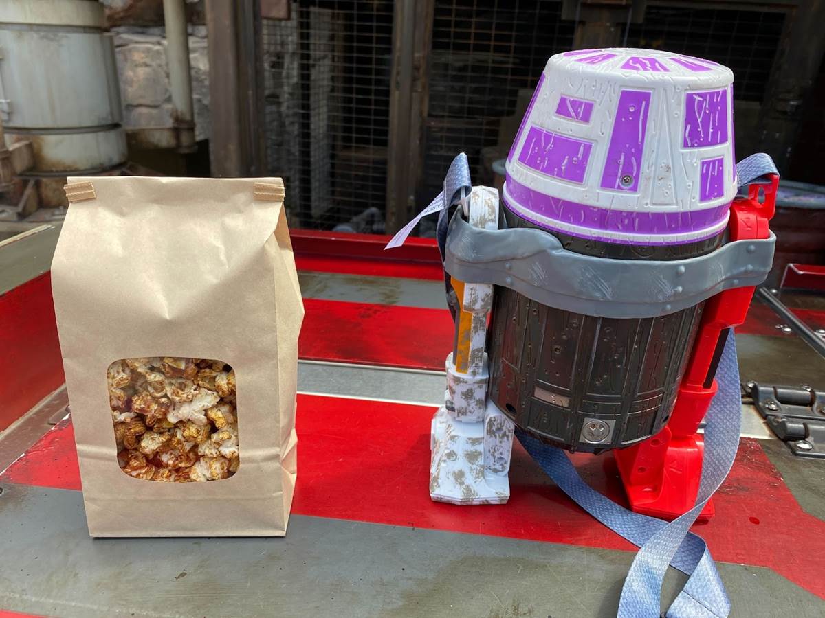 - As is the case with all things in Batuu (AKA Star Wars: Galaxy’s Edge), you cannot use Earth-ly lingo like “popcorn bucket" or anything like that. Be sure to be on the lookout of the “Droid Parts Premium Vessel" while you’re in the immersive land at the park.