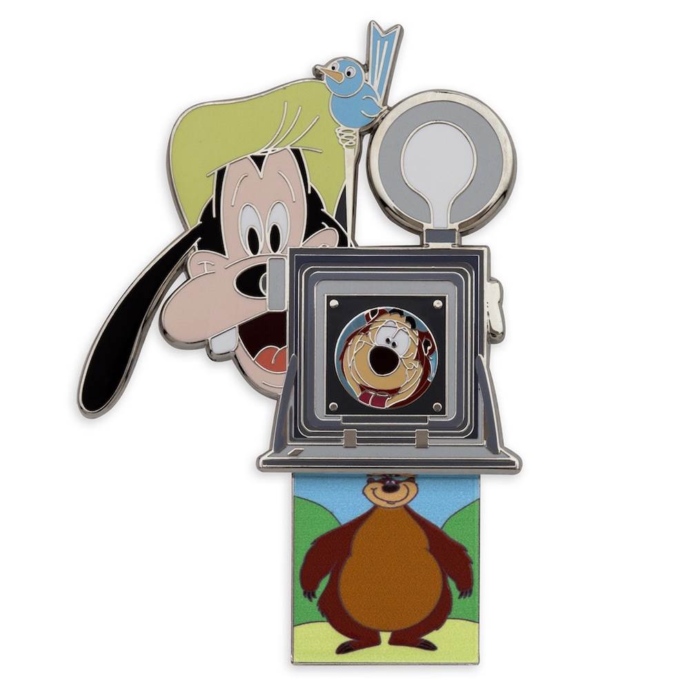 “Brownstone National Park's most trouble-bound resident Humphrey Bear made his first animated appearance alongside amateur photographer Goofy in “Hold That Pose" (1950), then went on to bedevil Donald Duck and Ranger J. Audubon Woodlore in a series of frantically funny short cartoons. This limited release pin with slide and swivel features is inspired by his screen debut. Pick it up and put it in the bag!"