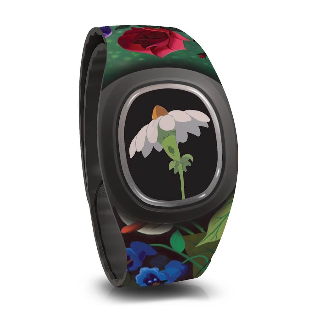 “This MagicBand+ design relives Alice's golden afternoon encounter with the Garden of Live Flowers from Walt Disney's animated classic Alice in Wonderland."