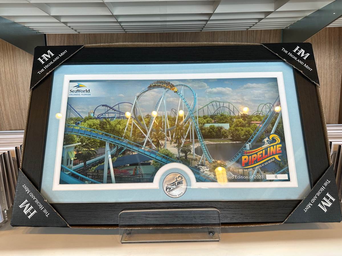 Guests looking to commemorate their ride with something a little more can get these excellent framed Pipeline coins, in two different styles.