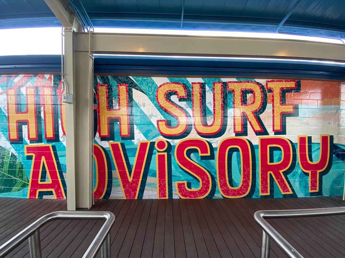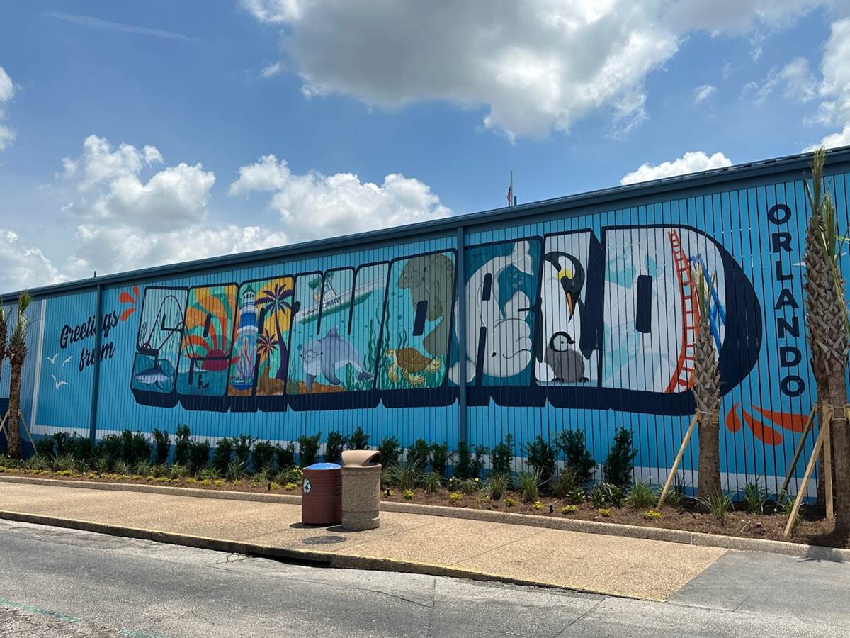 The maintenance building for the attraction is visible from the SeaWorld Orlando parking lot, but it’s been covered with a nice new mural welcoming guests to their day of wonder.