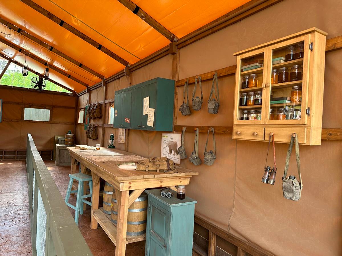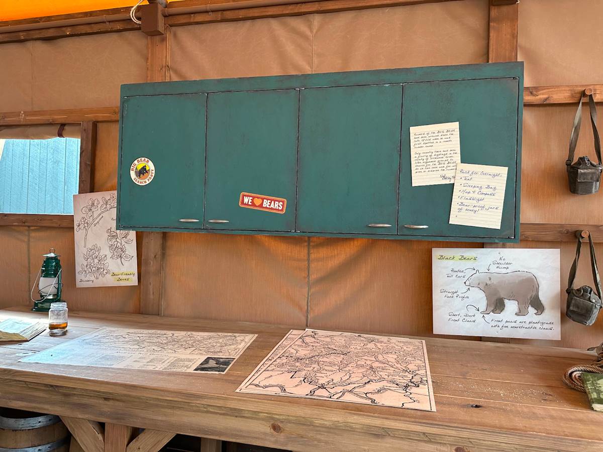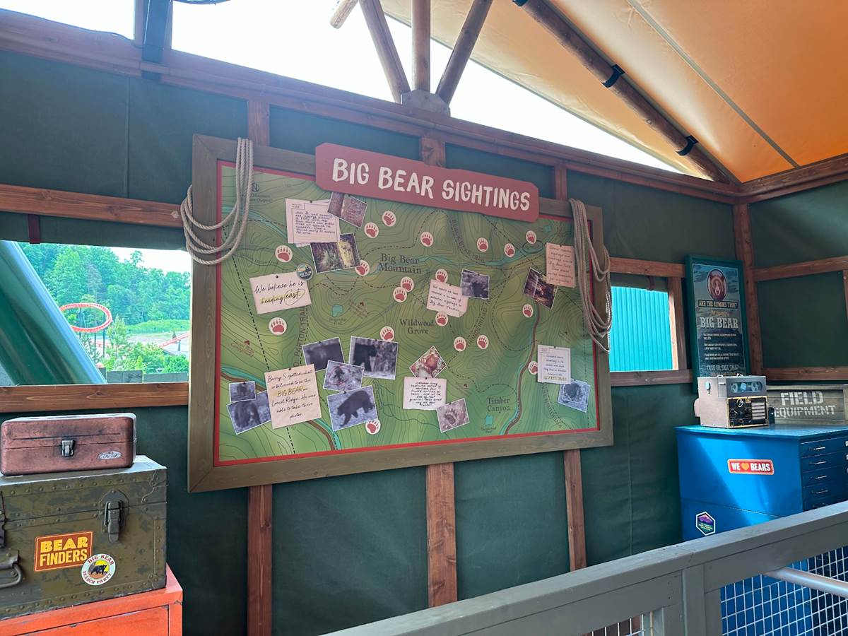 Dollywood guests are invited to assist Wildwood Grove’s resident wilderness explorer, Ned Oakley, in his quest to find Big Bear. The attraction’s queue features many details further explaining that backstory.