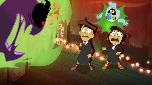 Ollie notices that Molly is acting strange (but when isn’t she) and uses his instruments to detect that Scratch is nearby talking to her. Clearly, she must be under his spell. Using one of his tools, he shoots Scratch with a substance that binds him and Molly and Ollie are tugging on either end of the ghost while Ollie explains why ghosts are bad (namely because they are scary and scared his dead) and Molly is explaining that that one ghost is bad but it doesn't mean all ghosts are bad (Lesson!).While all this is happening, the rest of Ollie’s family is alerted to this mass presence of ghosts downtown and heads to the House of Horrors. There, Molly tries to distract the rest of the Chen family while Ollie and Scratch help hide the rest of the ghosts, but all this chaos has awoken another element of the spirit world - Frightmares.