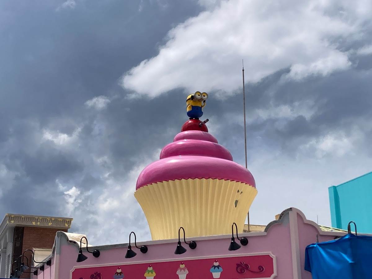 - Topped with a massive pink cupcake that’s visible from anywhere in the land, Bake My Day is a whimsical retail location and bakery featuring a selection of Minion-themed sweet treats, including cupcakes, macarons, s’mores and more, along with exclusive Minion-inspired merchandise like apparel, plush, drinkware, accessories, keychains and more.